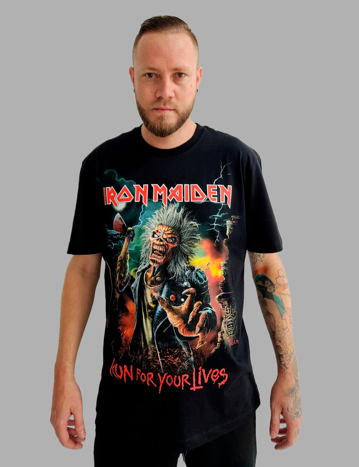 Camiseta Manga Curta Iron Maiden Run For Your Lives World Tour