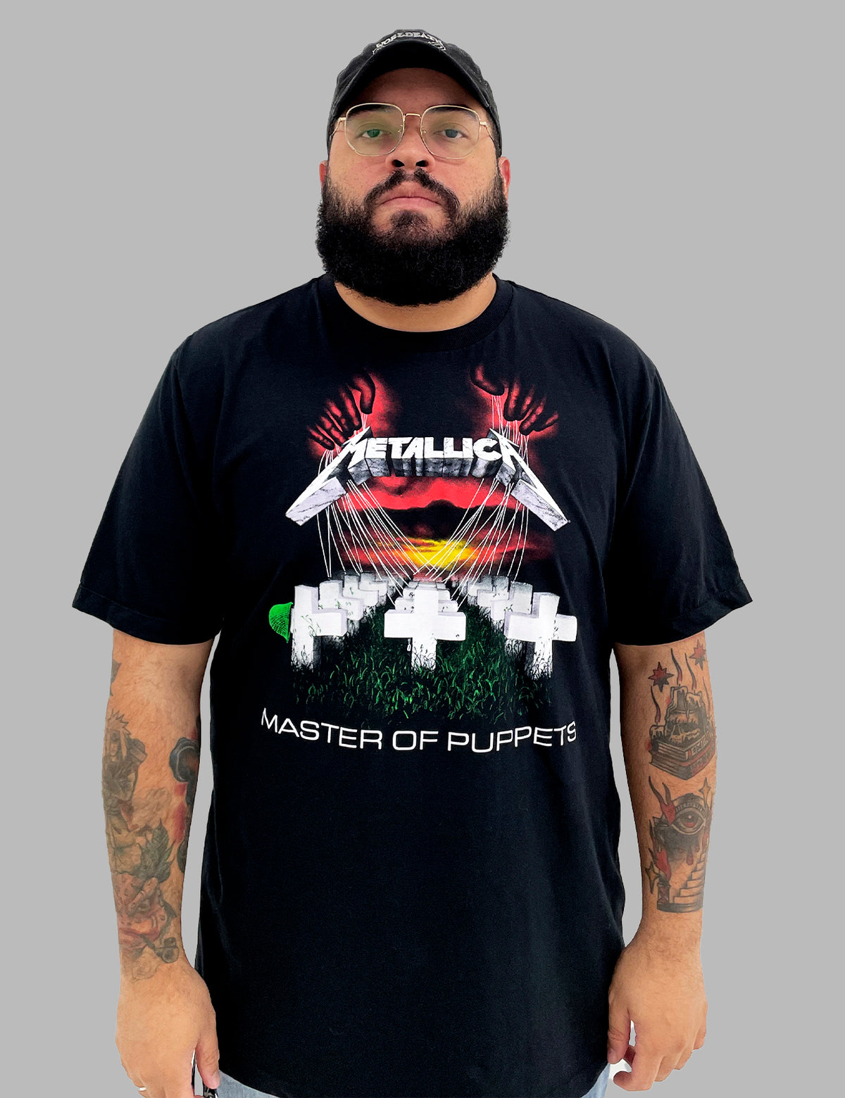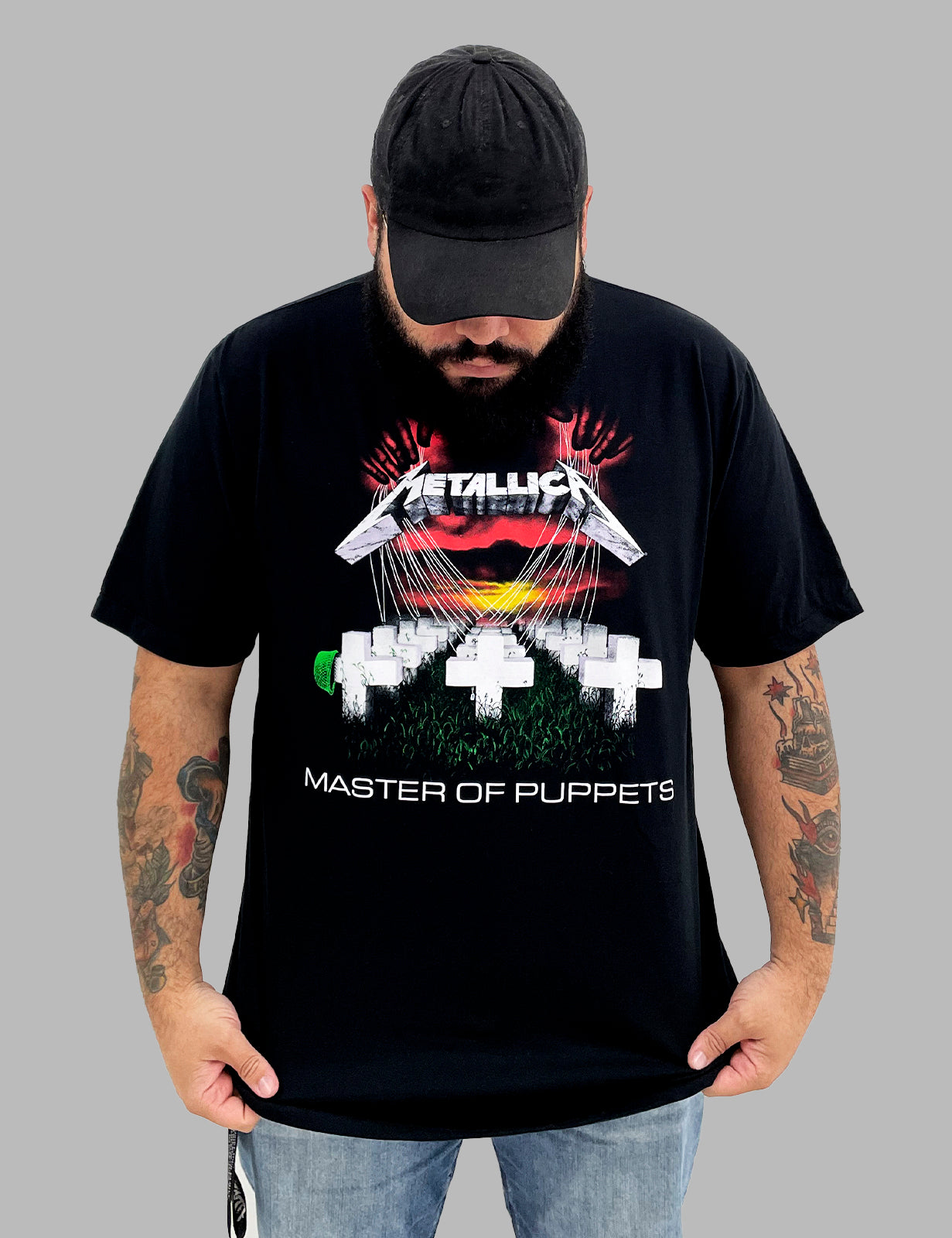 Inspirada no icônico álbum Master of Puppets (1986), esta camiseta exclusiva do Metallica é uma homenagem ao som pesado e à rebeldia que marcaram gerações. Ela traz uma estampa frontal impactante com a lendária capa do disco: cruzes alinhadas em um campo de guerra, presas por cordas como marionetes de um mestre invisível. Perfeita para quem carrega o espírito do metal no peito.