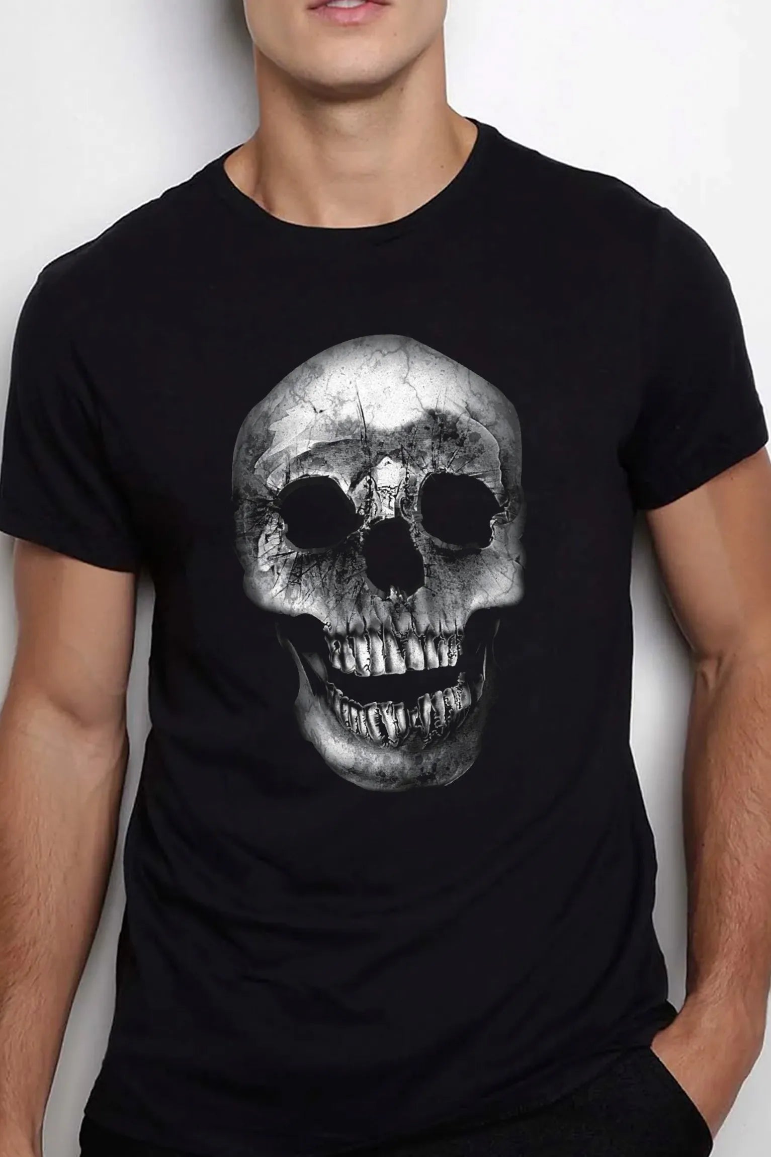 Esta camiseta apresenta uma estampa central de uma caveira em um fundo preto. Feita com malha 100% algodão e uma gola careca, proporciona conforto e durabilidade para uso diário.