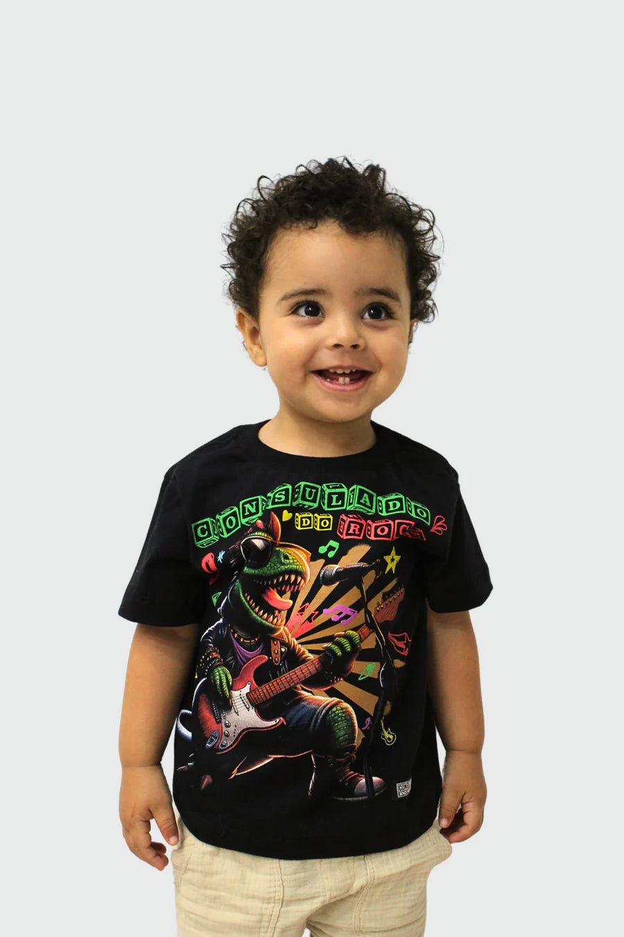 Camiseta Manga Curta Infantil Consulado do Rock Dino