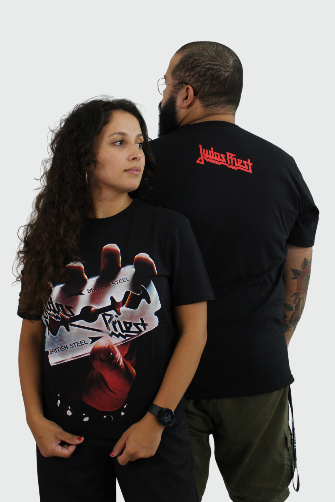 Referência quando o assunto é heavy metal, em 1980 o Judas Priest lançou um dos melhores álbuns do gênero, "British Steel". Sétimo álbum de estúdio da banda inglesa, "British Steel" forneceu aos headbangers alguns hinos atemporais do estilo, as poderosas "Metal Gods", "Breaking the Law" e "Living After Midnight". A capa do álbum, projetada por Roslav Szaybo, apresenta uma lâmina de aço britânico e se tornou um dos ícones do gênero. Fabricada em malha 100% algodão e com gola careca, a camiseta proporciona qualidade e durabilidade para os fãs da banda.