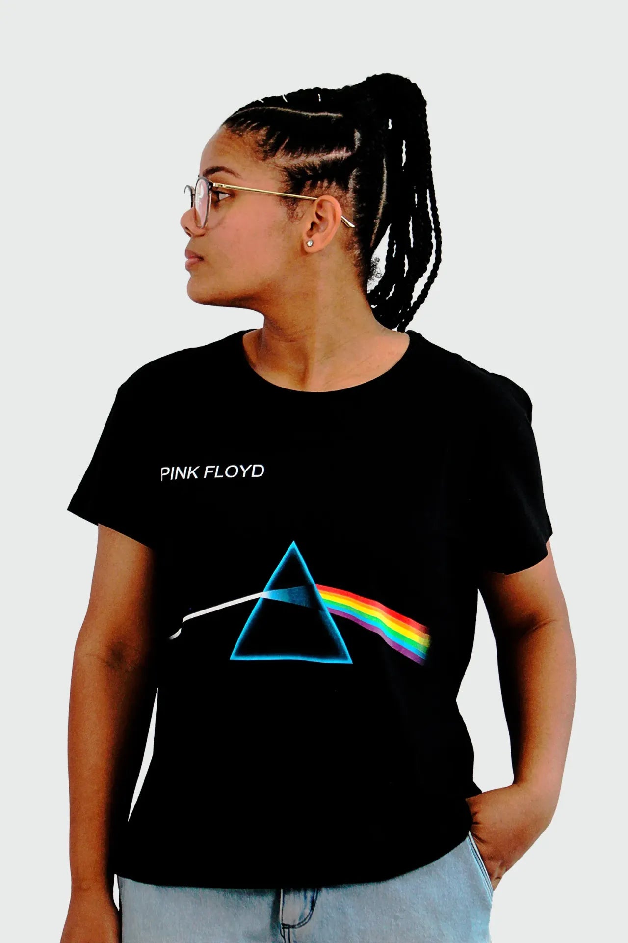 Camiseta Manga Curta Feminina Pink Floyd The Dark Side Of The Moon