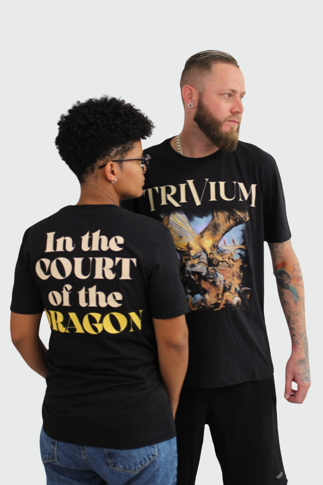 Lançado em 2021, "In the Court of the Dragon" é o 10° álbum de estúdio dos americanos do Trivium, banda que faz uma mescla de Thrash, Heavy Metal e Metalcore. O conteúdo lírico do disco é baseado na mitologia inspirada na literatura de fantasia; a partir dessa ideia, a banda criou sua própria mitologia. Fabricada com malha 100% algodão e gola careca, esta camiseta assegura qualidade e durabilidade para os fiéis seguidores da banda.